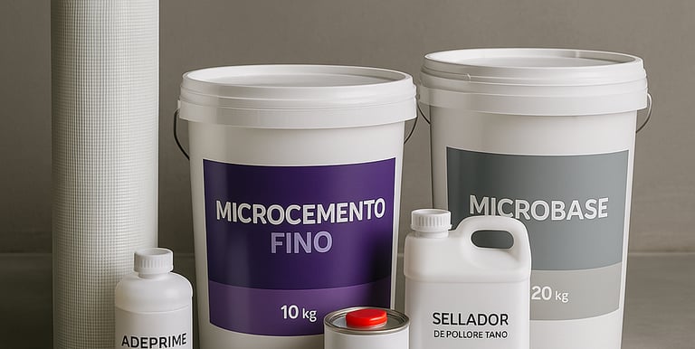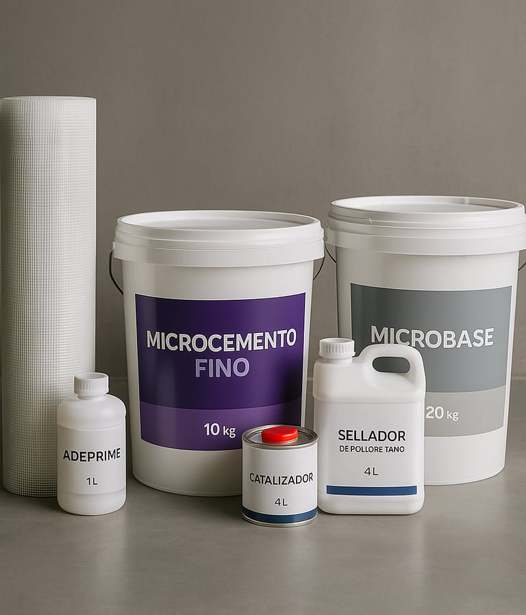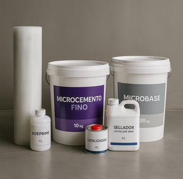 Encuentra microcemento profesional, mallas de fibra de vidrio, imprimantes, bases, selladores UV y todos los insumos para proyectos residenciales y comerciales.